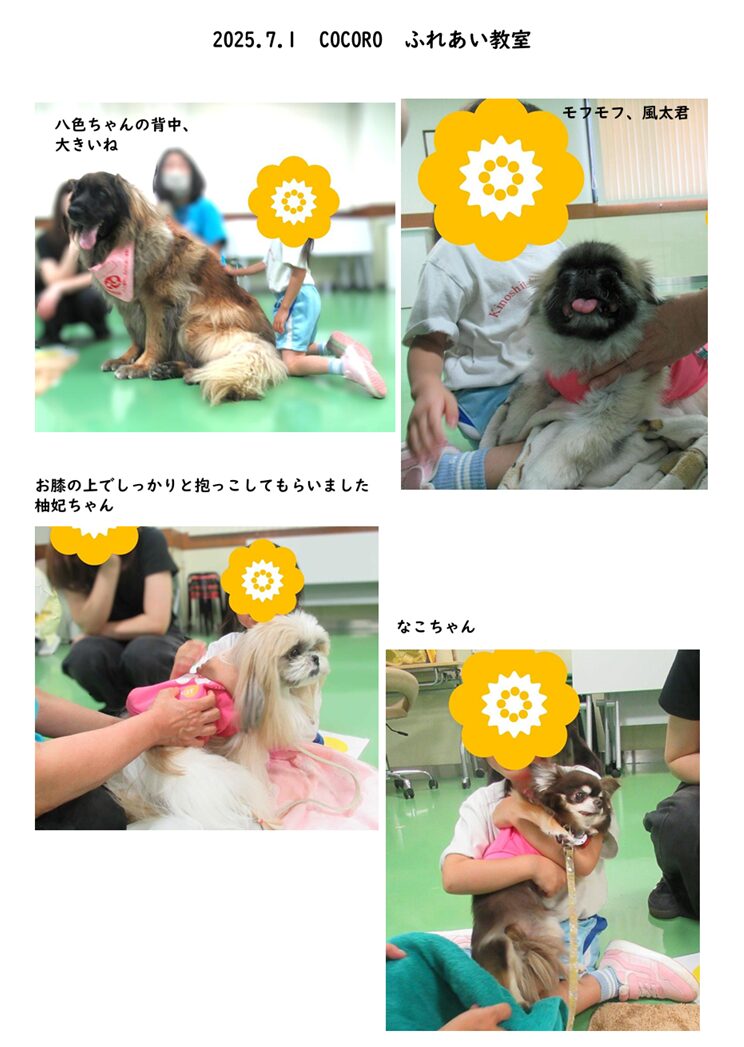 老人ホームなどの介護施設や病院へ訪問し、 利用者さんや患者さんたちとふれあう活動を行っているよ! 動物の力を借りて少しでも元気になってほしい、 そんな思いを込めて、動物たちも頑張っています! 7/1 COCORO訪問活動 2026.02.23 訪問活動1 訪問活動2 10/7 COCORO訪問活動